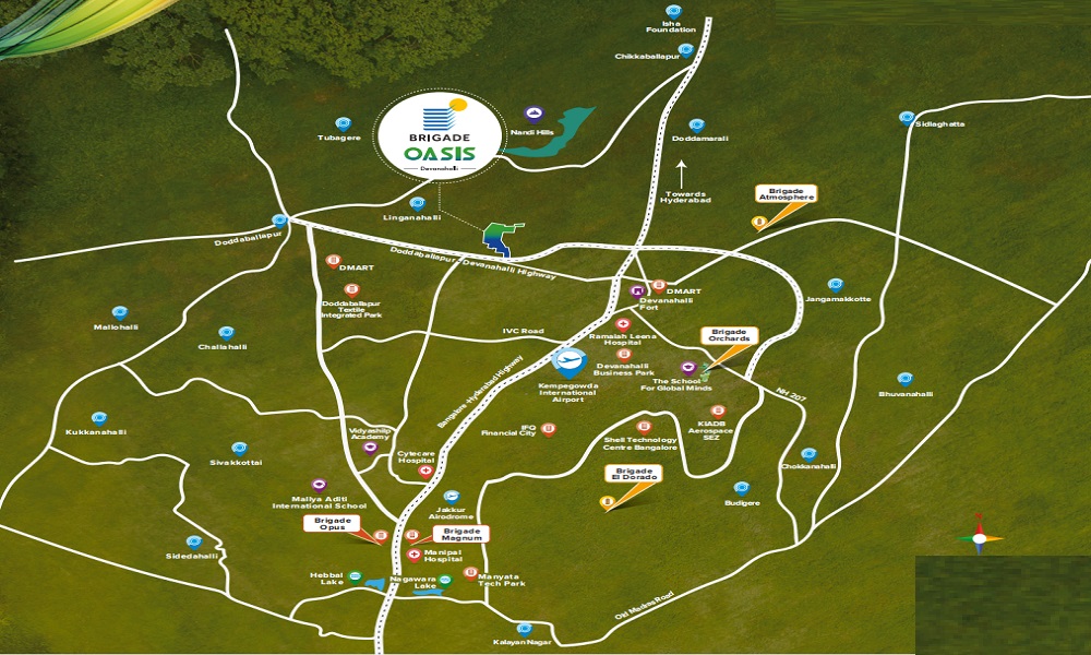 The strategic location ofOasis Bangalore makes it suitable for the residents. Some of the reputed academic institutions around the estate include Vihaan Public School, Chinmayee Public School, Srigandha International School, M.S Engineering College and Nalanda College. Among the established healthcare institutions, you have New Manasa Hospital and the Government Hospital. Residents can quickly get across to prominent places and places of interest around the area, like D Mart, Devanahalli Railway Station and Sri Krishna Complex. The international airport lies just 23 minutes away from the complex.